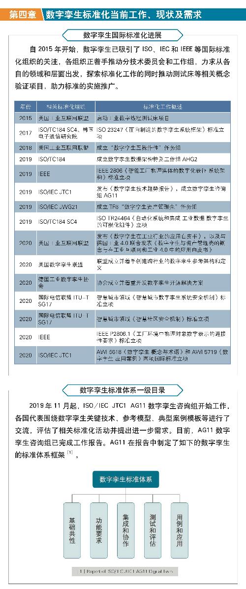 发表时间:2020-11-18 00:00 2020年11月11日,由中国电子技术标准化研究院联合树根互联技术有限公司主编,特斯联科技集团有限公司、中机生产力促进中心等20余家数字孪生领域开发商、集成商、科研院所、高校联合编写的《数字孪生应用白皮书》在2020年新一代信息技术产业标准化论坛上正式发布。